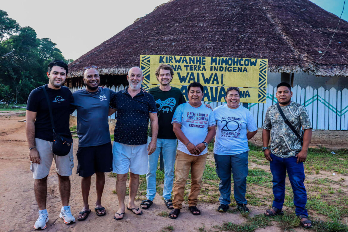 Indígenas Wai Wai e equipe da ACT-Brasil I Foto: Ricardo Rey Londoño/Acervo ACT-Brasil