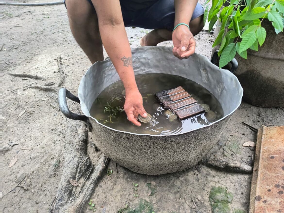 Paralelamente à restauração florestal, a comunidade iniciou um projeto de proteção de tartarugas da região. Parte dos filhotes recém-nascidos é recolhida e mantida sob cuidados até atingir tamanho seguro para enfrentar predadores naturais.
