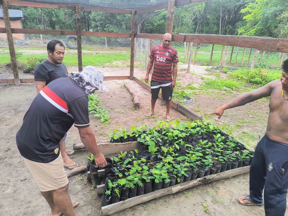 Entre as mudas já plantadas estão caju, buriti, açaí e aroeira, todas produzidas no próprio viveiro. Essas espécies têm alto valor ecológico e cultural para os Ãwa.